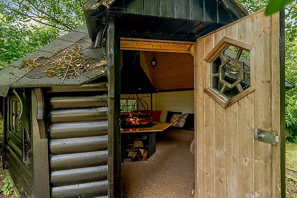 Escape to an utterly romantic retreat. Nestled within a lush garden paradise, this hot tub escape gazes out upon an idyllic pond, where a willow tree dances in the gentle breeze. Your sanctuary is complete with a wood burner, a lazy spa, and a BBQ, offering the perfect escape from everyday life.