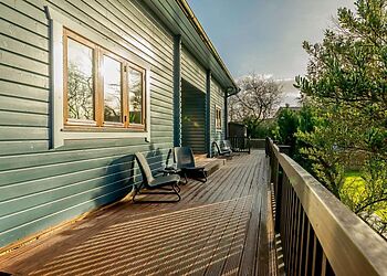 • Decking sweeps around the lodge to private hot tub