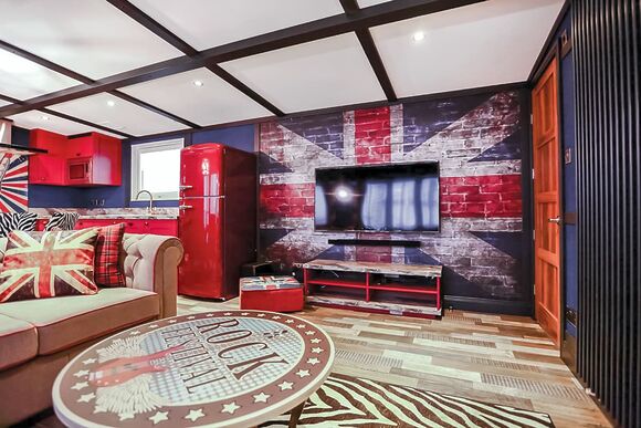 The Rockstar caravan offers stunning holiday accommodation in Lincolnshire. The vibrant interior boasts a wealth of comfort and style and is the perfect place to enjoy the ultimate in rest and relaxation. Sleeping up to 7 guests across 2 bedrooms and a pull-out sofa, your rock star accommodation offers the ultimate indulgent experience. The eye-catching interior is where your musical loves meet your holiday dreams. Furnished in an opulent rock star style, with master king-size double with freestanding bath in the room and en suite. The second bedroom has full size bunk beds and a single, both bedrooms include TVs.