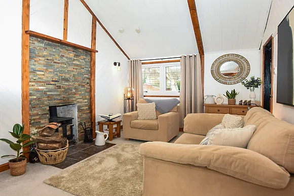 The top riverside location means you can fish directly from your garden. Watch swans glide by while sipping your morning coffee. Hire paddleboards or kayaks and explore the waterway. The local pub is just minutes away on foot. Perfect for a pint after a day of doing absolutely nothing. Or heat up the wood-fired hot tub and soak under the stars. Who needs TV when you've got this view?