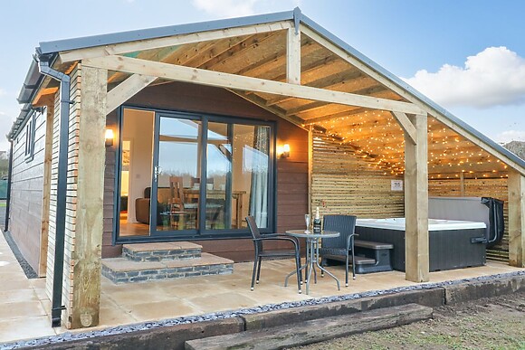 A stylish single-storey lodge, inviting two guests. Enjoying countryside and lake views, whilst adorning a contemporary interior, a private decked area with hot tub, and a convenient adult-only location near local amenities, Bluebell offers the ideal base for a romantic getaway, whilst exploring the delights across the heart of England.