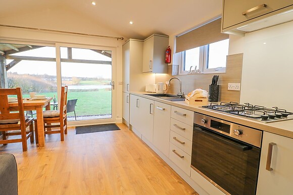 Benefit from two parking spaces before stepping up into the lodge, reaching the spacious open-plan living area; here you can rustle up meals for two in the sleek kitchen, dine, and unwind, with far-reaching vistas in the backdrop.