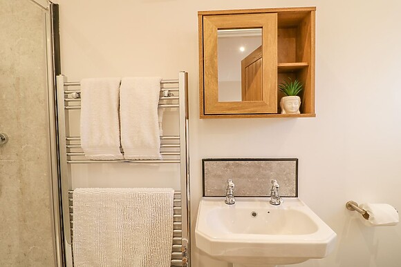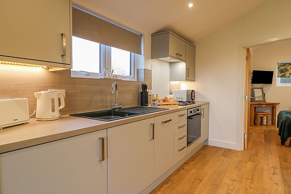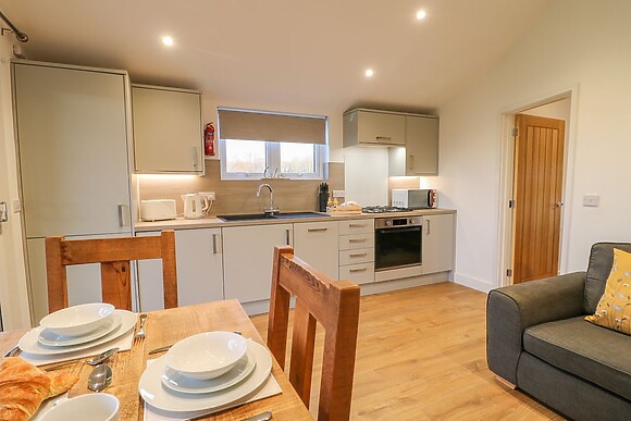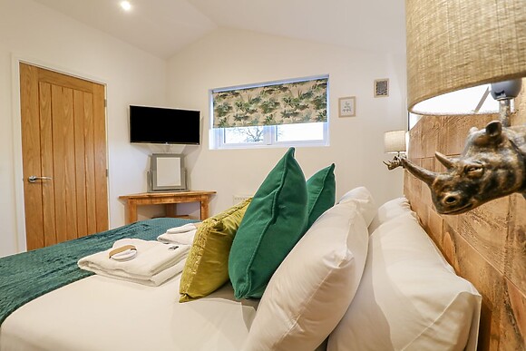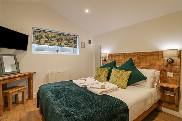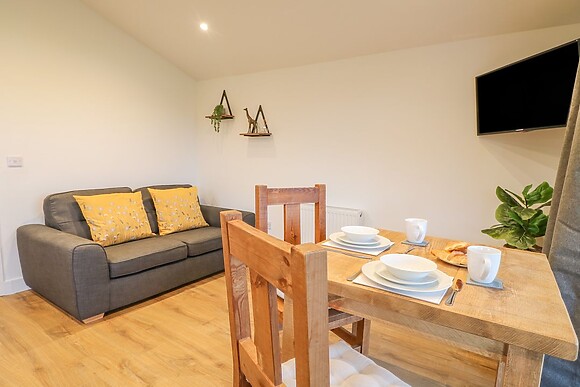 After dinner, head outdoors to watch the stars appear, before climbing into the babbling hot tub for an indulgent soak. Refresh in the contemporary en-suite shower room, before retiring to the plush double bed, enveloped by homely furnishings, ample storage, and a TV.