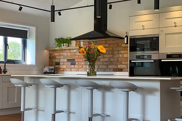 Five bedrooms: 2 king-size, 1 twin, 2 family rooms (one with 3 singles and trundle, one with king-size and single with trundle) Five bathrooms: 3 en-suite shower rooms with WCs, 1 en-suite bathroom with shower over bath and WC, 1 en-suite wet room Open-plan kitchen/living/dining area with vaulted ceiling Two electric ovens with warming drawers and induction hob American-style fridge/freezer with ice machine Two dishwashers and microwave Coffee machine Utility room with washer/dryer Underfloor heating throughout Wood burner (first basket of logs included) Loxone home automation system with lighting scenes Ceiling speakers in living room 8m x 4m heated indoor swimming pool (1
