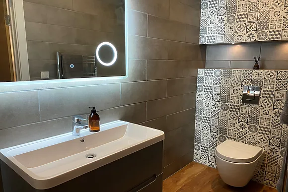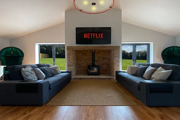 5-Star En-Suite Accommodations throughout. All five bedrooms are ground floor with Smart TVs. Two family rooms sleep two adults and two kids each. One twin with wet room. Two king-size rooms. All en-suite. Smart Home Technology controls lighting and temperature. Ceiling speakers connect to your devices.