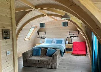 Tawny Pod offers an intimate fishing experience for couples within the Shropshire Hills National Landscape. This romantic glamping pod sleeps 2 guests and welcomes 1 pet, making it perfect for peaceful fishing breaks with your four-legged companion. The pod features a private hot tub and sits among peaceful farmland with rolling countryside views.