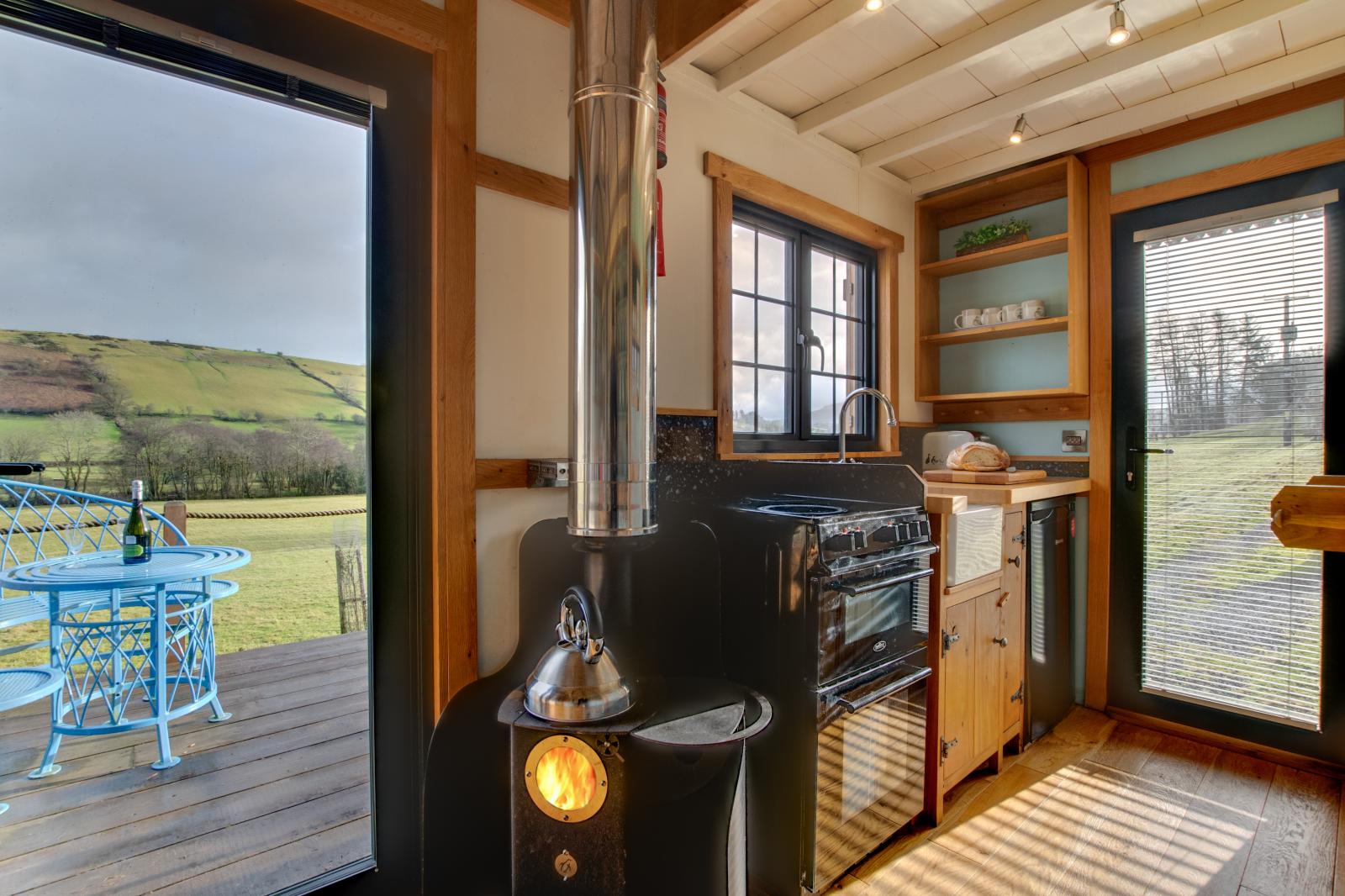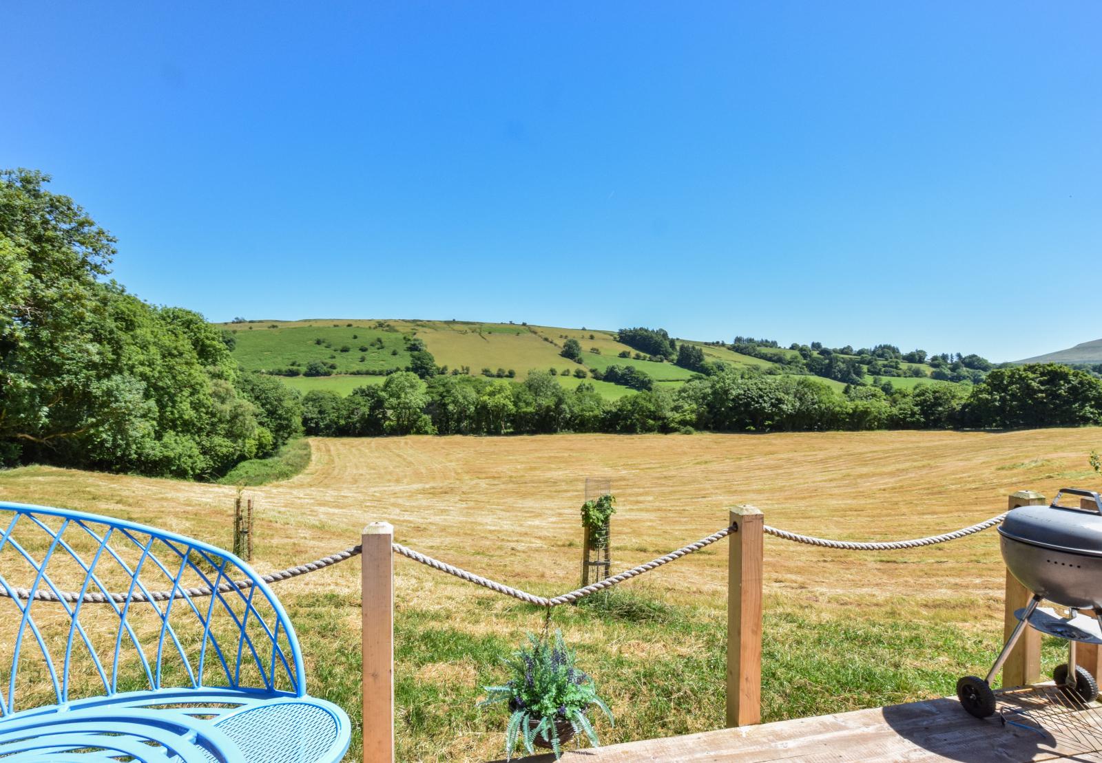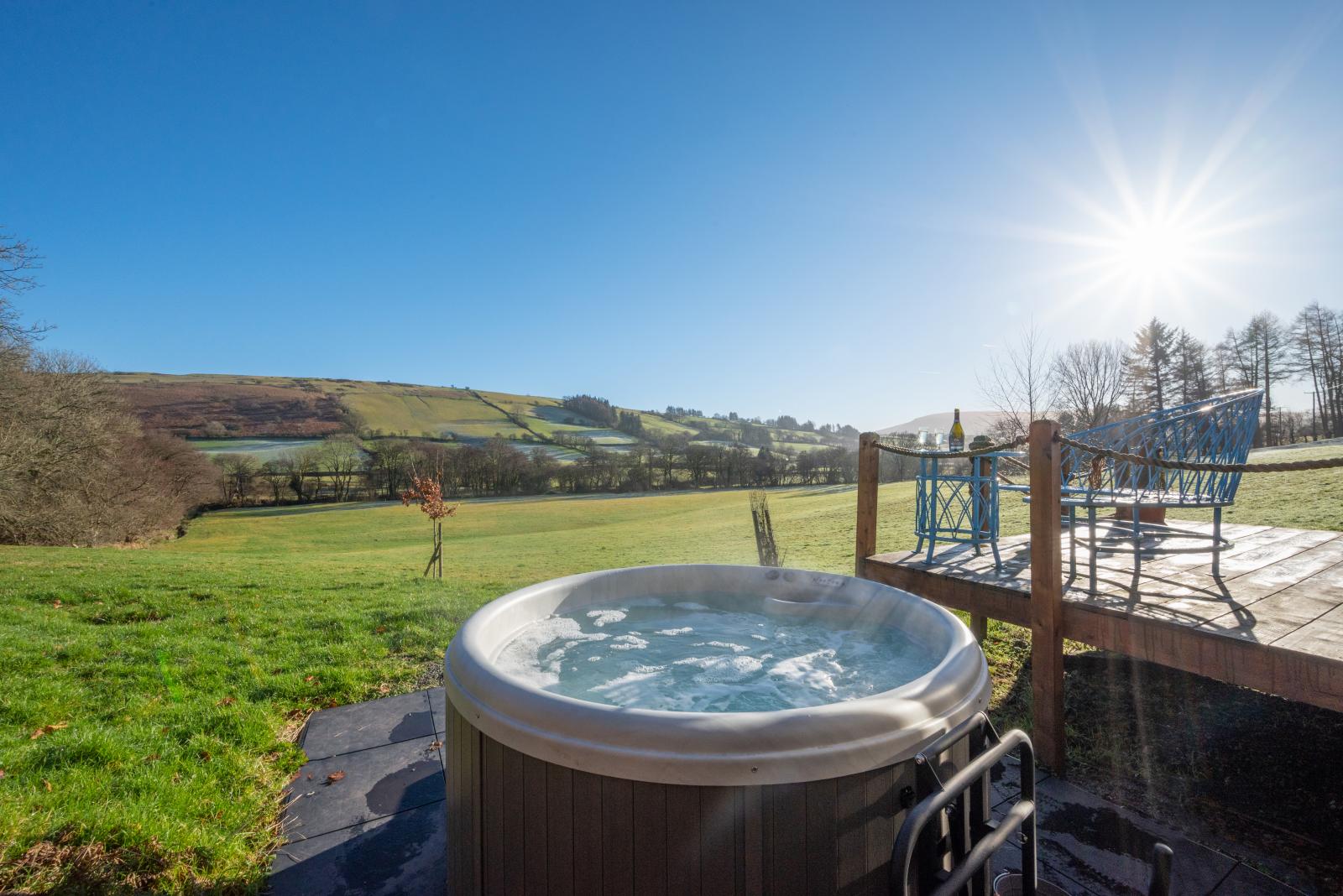 Step outside onto the deck to enjoy al fresco dining or simply relax and take in the sweeping views. The BBQ and rocking chair add to the outdoor charm, perfect for stargazing in the Dark Sky Reserve. Descend the steps to the field or unwind in the electric hot tub, experiencing the epitome of relaxation amidst tranquil surroundings.