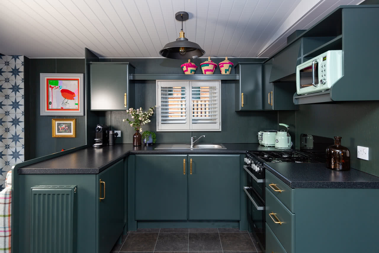 • Kitchen with oven, hob, microwave, kettle toaster and fridge/freezer