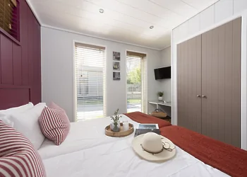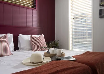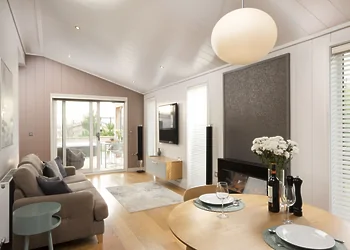 This luxury lodge is modern and spacious with luxurious furnishings, a fully equipped kitchen, a cosy living space and home decor throughout.