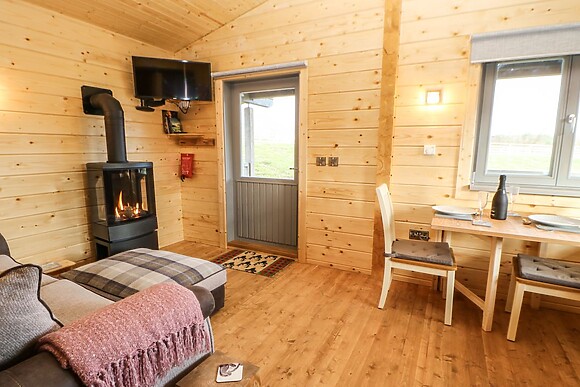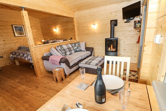 Inside you'll find a well-thought-out studio-style layout. The open-plan space includes a kitchen, dining and sitting areas plus a cosy gas fire. Cook on the electric hob or use the pizza cooker for a top night in. The modern shower room features a hot waterfall power shower that'll blast away your hiking aches. The king-size bed promises proper comfort after busy days of exploring.