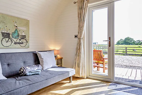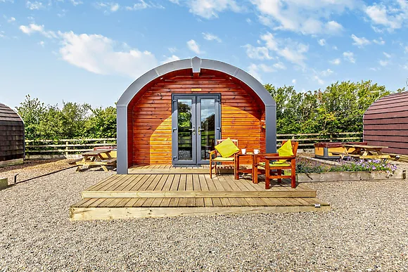 The pod comes fully equipped with TV, dining table, electric hob, fridge/freezer, microwave and WiFi. Everything's spotlessly clean according to reviews. Dog-friendly too - one pet is welcome.