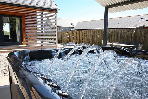 Yes, the lodge boasts a hot tub located in the enclosed garden. It offers a serene setting to relax and enjoy the surrounding countryside views.
