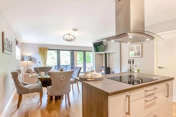 Fern Lodge sleeps two in a super-king-size bedroom, which can convert to twins if needed. The lodge features an open-plan lounge, kitchen and dining area. There's even a smart TV so you won't have to miss the latest Netflix episodes.