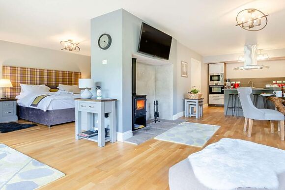 The wood-fired hot tub and a welcoming log burner make for cosy nights and you'll love the bespoke kitchen and interiors. Think modern, light and stylish! You’ll get a free welcome hamper too, filled with goodies to kick off your stay in Scotland in style.