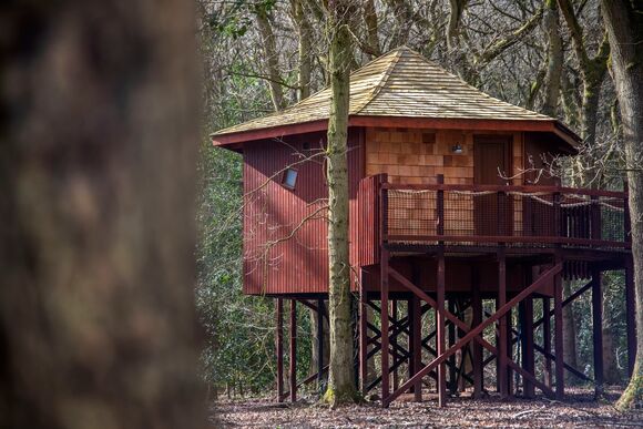 Situated deep in Scotland's woodland, the Golden Oak Treehouse at Strathyre offers spectacular 360-degree views of the surrounding landscape. This architecturally impressive accommodation comfortably houses ten guests, making it ideal for group holidays.