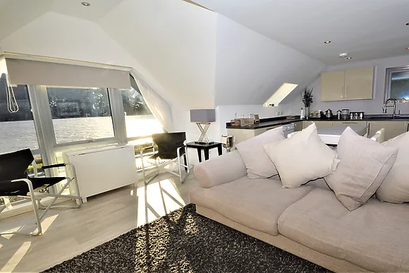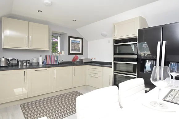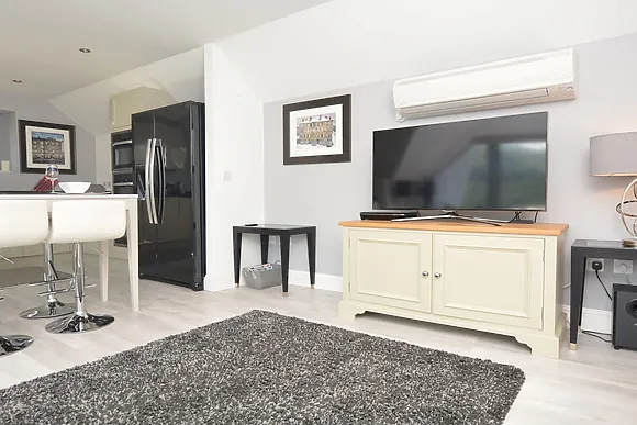 The accommodation is seriously swish! Downstairs features a luxurious super-king bedroom with Smart TV, en-suite shower and separate dressing room. Upstairs you'll find an open-plan living area with surround sound, fully-equipped kitchen with American fridge-freezer.
