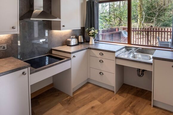 We particularly recommend the fully-equipped kitchen with its lowered worktop, making self-catering straightforward for wheelchair users.