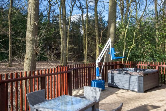 The private hot tub with hoist means everyone gets to enjoy that end-of-day soak while watching the sunset through the trees.