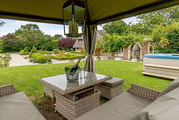 As the sun sets, you're invited to revel in the simple joys of life. Challenge your companions to an exhilarating game of croquet on the verdant lawn or exchange knowing glances with the resident alpaca in the neighboring field. Sip a glass of fine wine in the captivating gardens as the world transforms around you.