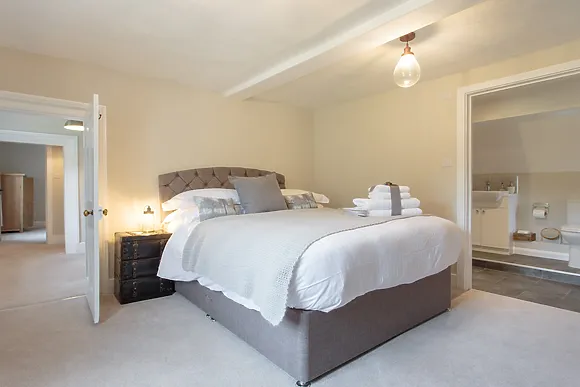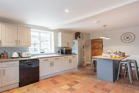 Inside, the farmhouse exudes warmth and character. The farmhouse kitchen and dining area, with its beamed ceiling and rustic stone floor, welcomes you with open arms. Equipped with modern amenities, including an electric range oven, hob, fridge/freezer, microwave, and dishwasher, it's your home away from home. Gather around the farmhouse table for leisurely breakfasts and family feasts.