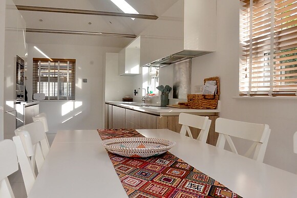 Our family of 4 stayed for a week using both the Lodge and the Annex. The accommodation is very clean and well maintained providing comfortable 3 bedrooms and 3 shower rooms spacious open plan dining and lounge area. The bedrooms were not completely blackout, but the road is not street lit so rooms very dark at night. Jen provided extra fans when requested on the hot arrival day. The kitchen was sufficiently stocked with equipment, but some of the cupboards are high with hinged doors. Plenty of worktop space. The Wifi worked very well, with Smart TVs. The gravel drive way has a narrow access for large cars, with a secure gate. We loved that the lodge is on a quiet hill , surrounded by tall trees. Good travel links to London via Hayes Station. Thanks Jen for your quick replies to property queries.