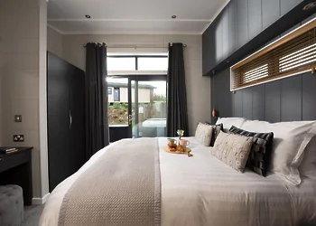 The Fairway Lodge VIP is a modern and stylish lodge with a private outdoor hot tub and is highly recommended for a luxury retreat.