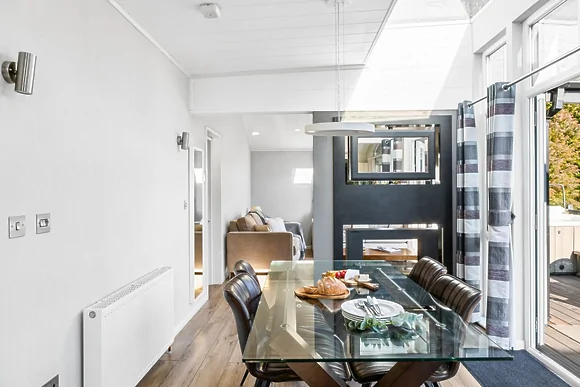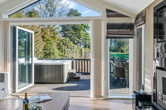 The edge of Exmoor National Park location offers stunning countryside walks and wildlife spotting opportunities. You're within 5km of golden beaches and just minutes from Combe Martin. The wraparound deck provides the perfect spot for morning coffee or evening drinks while soaking in that hot tub.