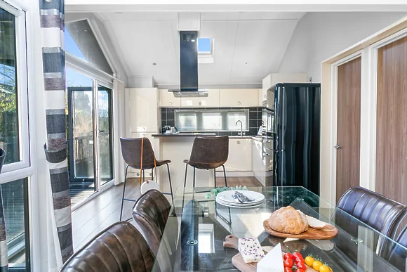 Churchill Lodge at Kentisbury Grange is a contemporary two-bedroom lodge in Devon's countryside. This modern retreat sits on the edge of Exmoor National Park with private hot tub overlooking lake views. Perfect for couples and families seeking a peaceful escape with easy access to North Devon's coast.