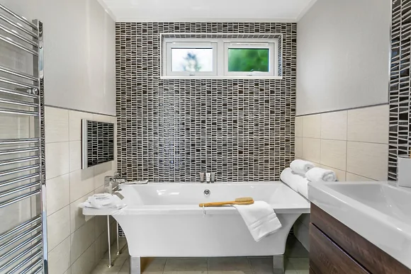 Churchill Lodge at Kentisbury Grange is a contemporary two-bedroom lodge in Devon's countryside on the edge of Exmoor National Park. This modern accommodation sleeps four guests and offers private hot tub with lake views plus convenient EV charging point facilities.