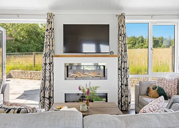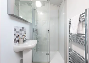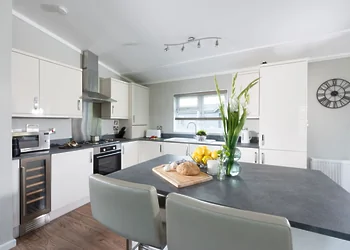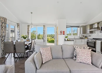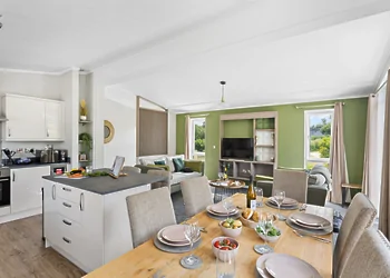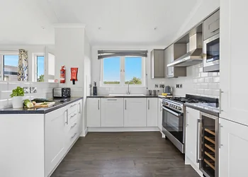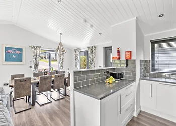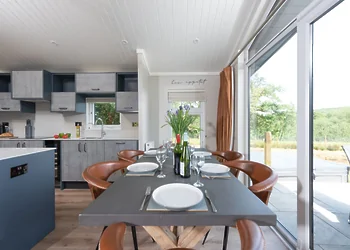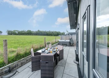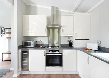 Periwinkle Lodge at 3 Roadford Lake Lodges sits just 100 metres from Roadford Lake in Devon's peaceful countryside. This modern lodge combines lakeside location with luxury touches including a private hot tub and wine fridge. The property features Shaker-style kitchen units and an electric flame-effect log burner for cosy evenings.