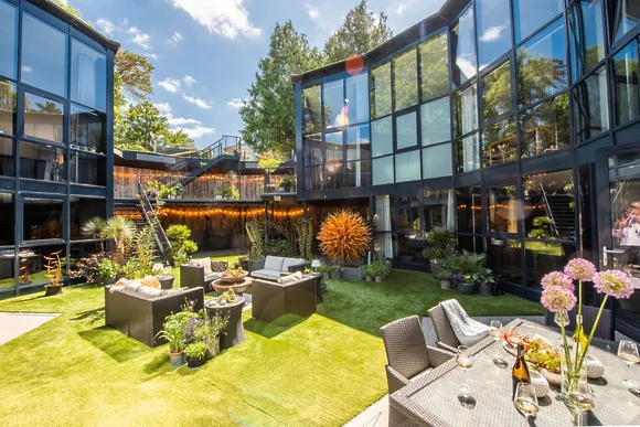Woolbrook Reservoir is a former reservoir conversion celebration home in Sidmouth, Devon that sleeps 16 guests across 6 bedrooms. This jaw-droppingly beautiful property combines luxury with playfulness in one superbly spacious package. The unique design makes it perfect for large group celebrations and family gatherings.