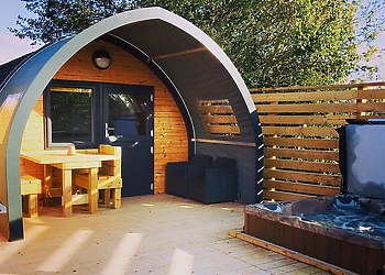 The lodges can sleep 2 to 4 guests and all have modern furnishings, open plan living, dining and kitchen space and outdoor patio with table and chairs and a hot tub.