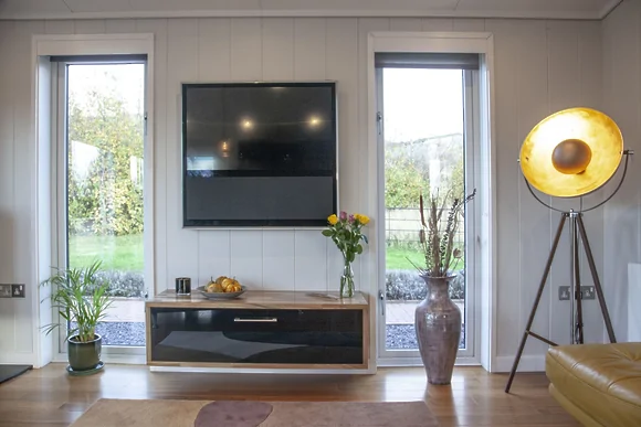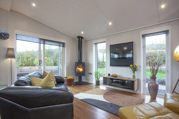 Inside you'll find open-plan living with kitchen, dining and lounge areas. The super king bedroom includes a walk-in wardrobe with dressing table and wall-mounted TV. The en-suite bathroom boasts a freestanding bath with LED spotlights and walk-in rainfall shower. Entertainment comes via Bang & Olufsen Smart TV with Apple TV in the main living area.