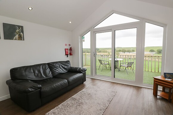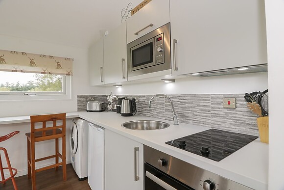 Inside you'll find a bright and attractive open-plan space with a well-equipped kitchen with electric oven, two-ring hob and everything else you could need. The king-size bedroom includes a Smart TV and a posh walk-in wardrobe. There's also a modern shower room with a heated towel rail. And the ramp access makes the property accessible for all guests.