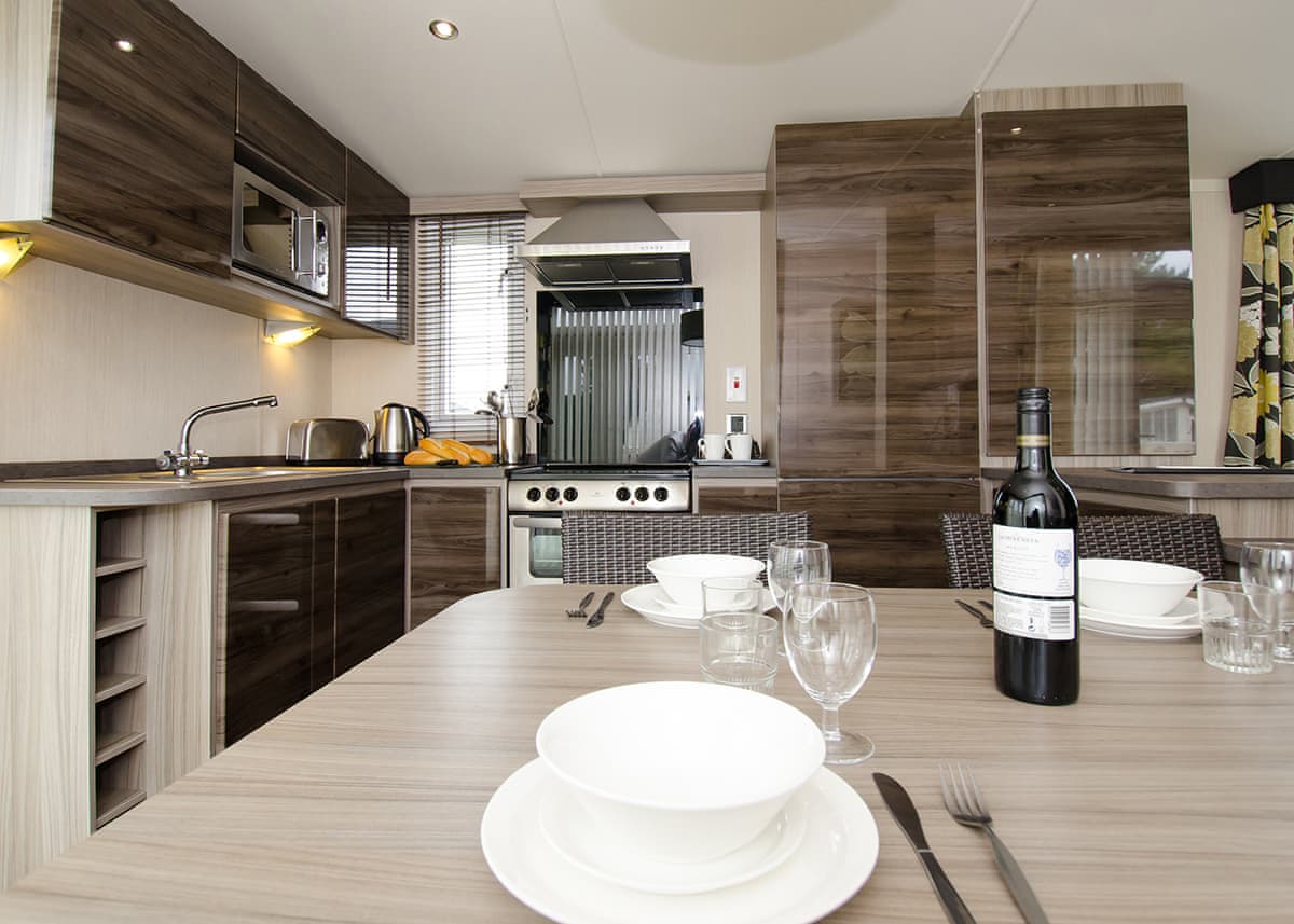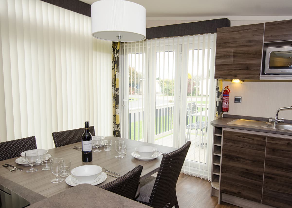 There's a choice of lodges or caravans - we really like the magnificent Heron Lodge. Spacious enough for six, it has a Wii games console, iPod docking station and WiFi access, as well as a decking area with private hot tub and patio furniture.