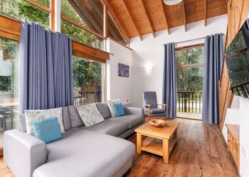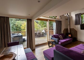 Light the log burner, crack open the board games and watch the weather roll across the forest canopy from your floor-to-ceiling windows.