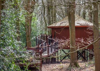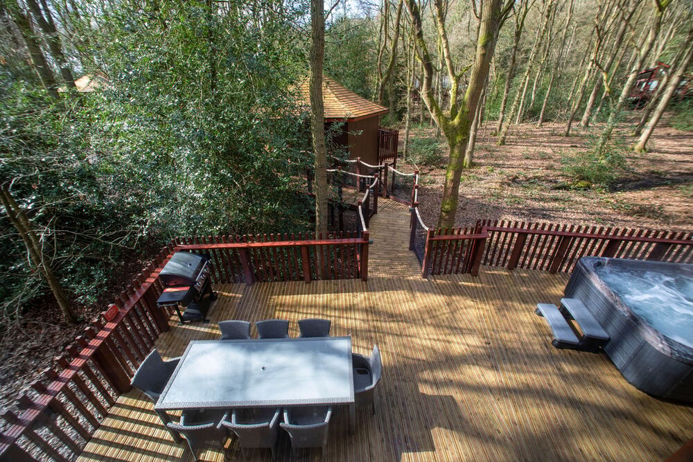Welcome to the heart of Delamere Forest in Cheshire, where you’ll find the Golden Oak Treehouse a forest escape that promises an unforgettable stay for up to 10.