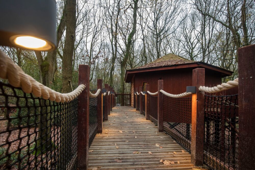 Your group adventure begins in a 4-bedroom cabin with an awesome rope-bridge leading to an extra en-suite bedroom.