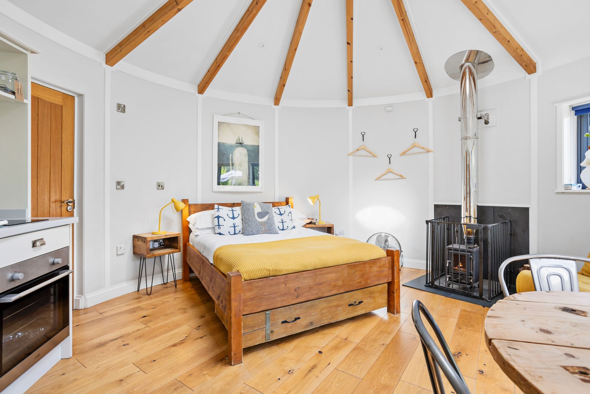 The wood burning stove creates a cosy atmosphere alongside underfloor heating.