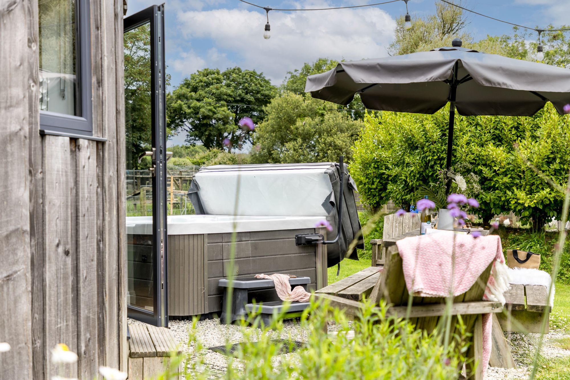 • Private hot tub with privacy screen