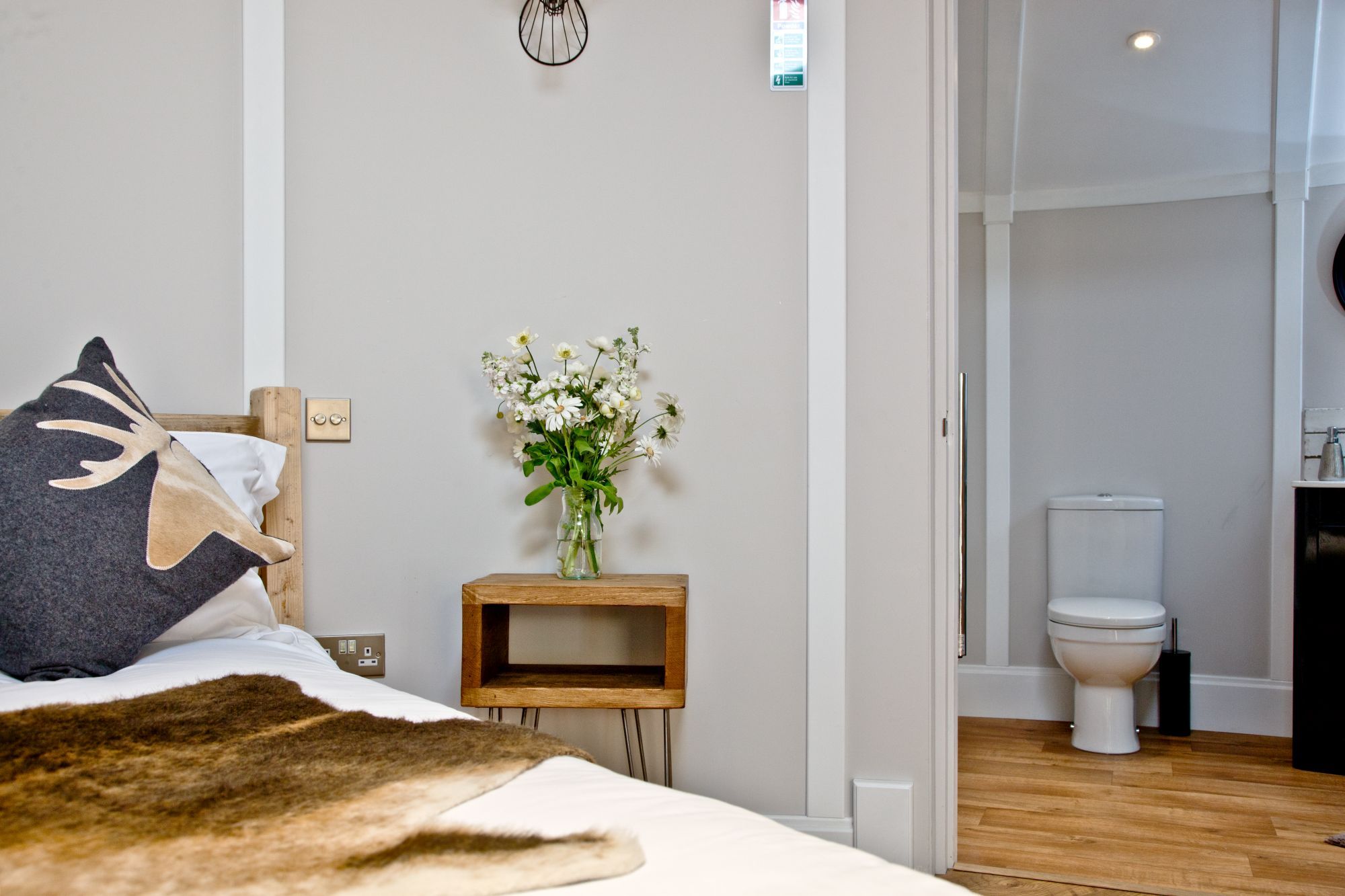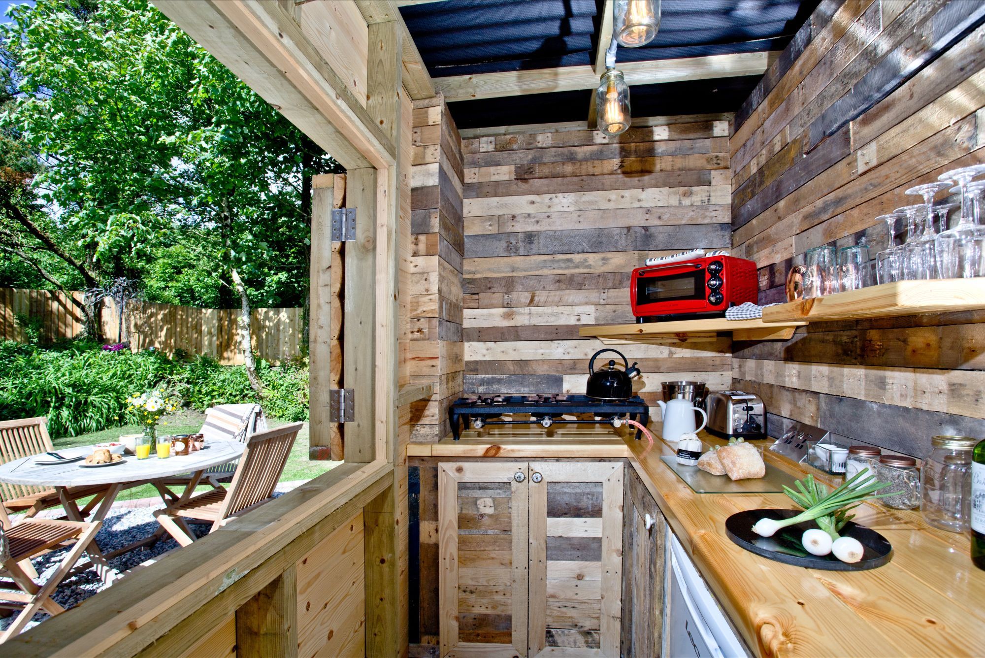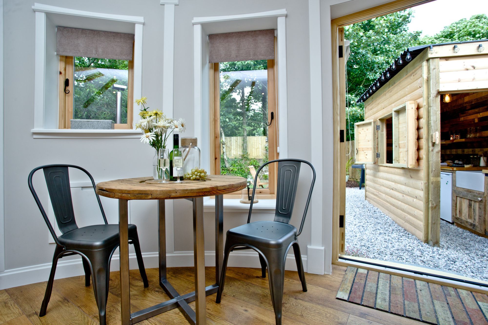 Inside you'll find two bedrooms - one double cabin room with storm lanterns and candles, plus single bunk beds in the second room.