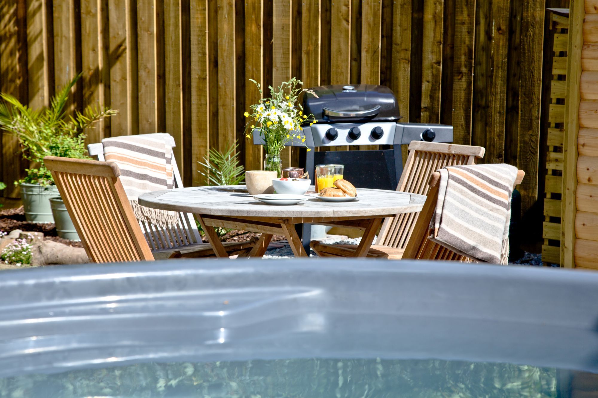 • Private electric hot tub with privacy screen