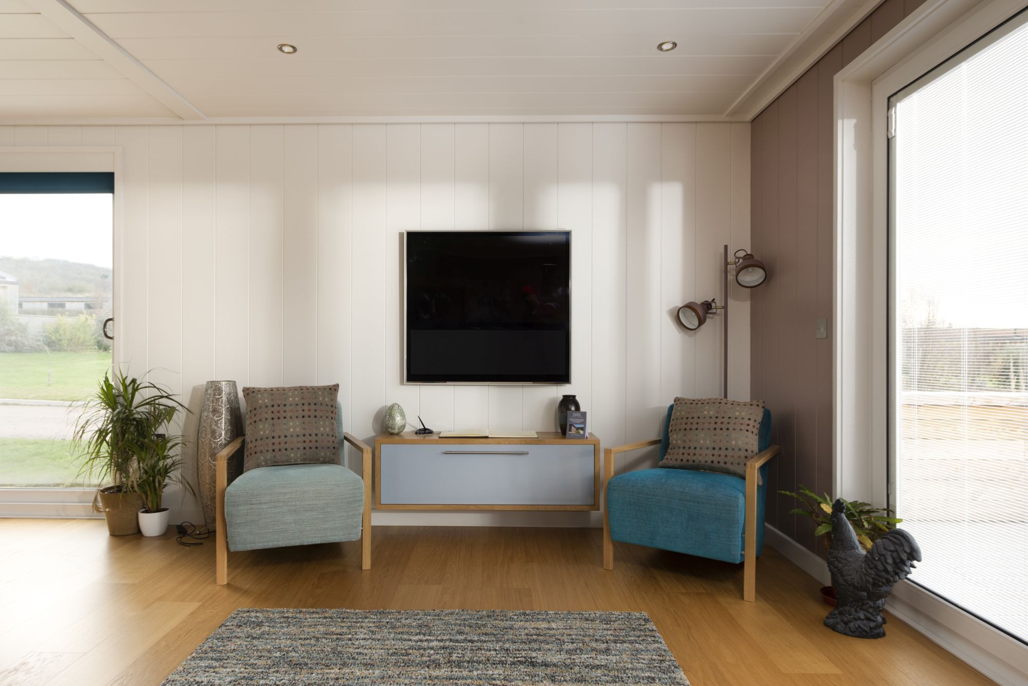 Inside features one bedroom with super king bed and walk-in wardrobe with illuminated mirror.