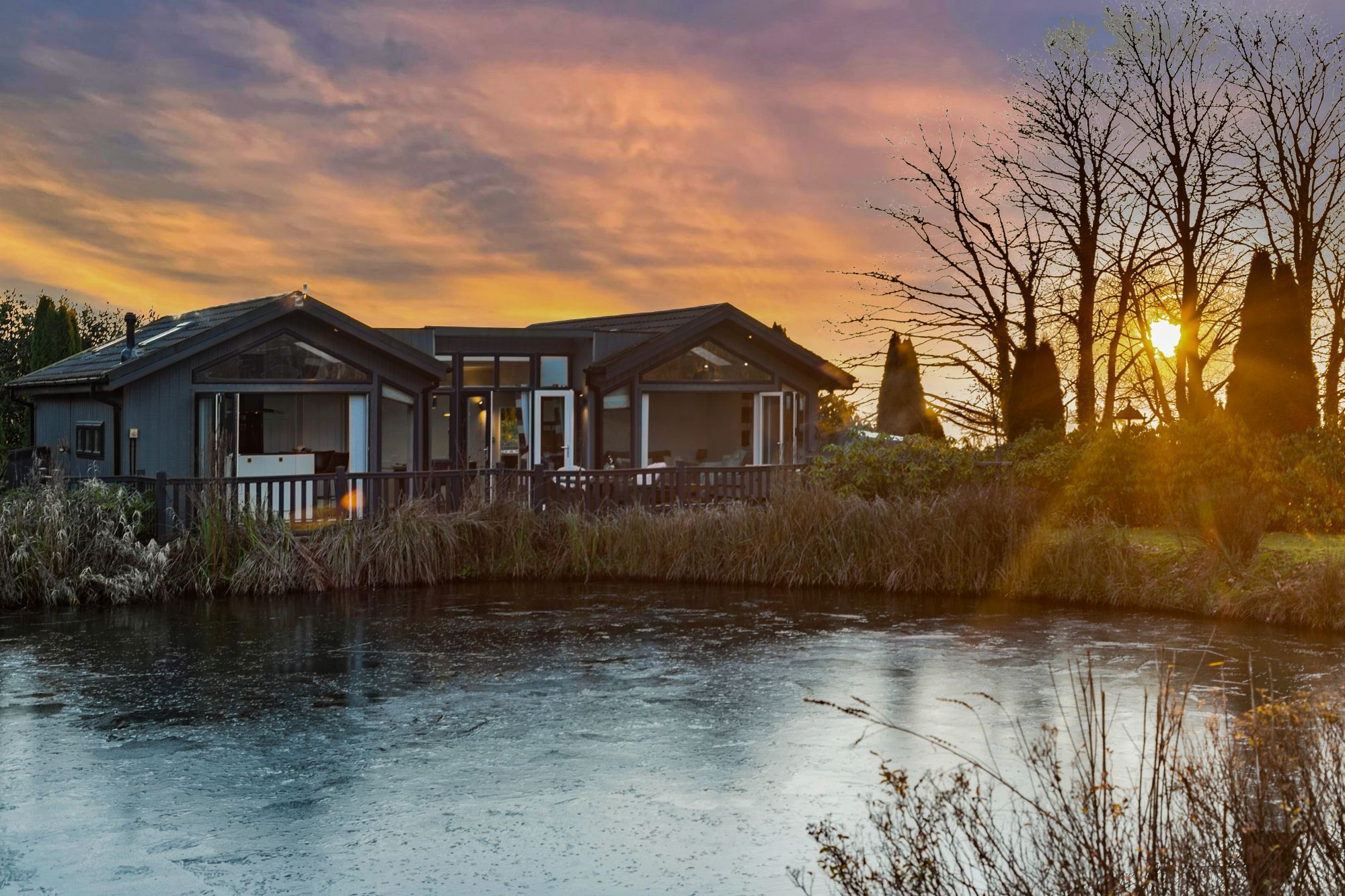 - Contemporary lodge with lake views