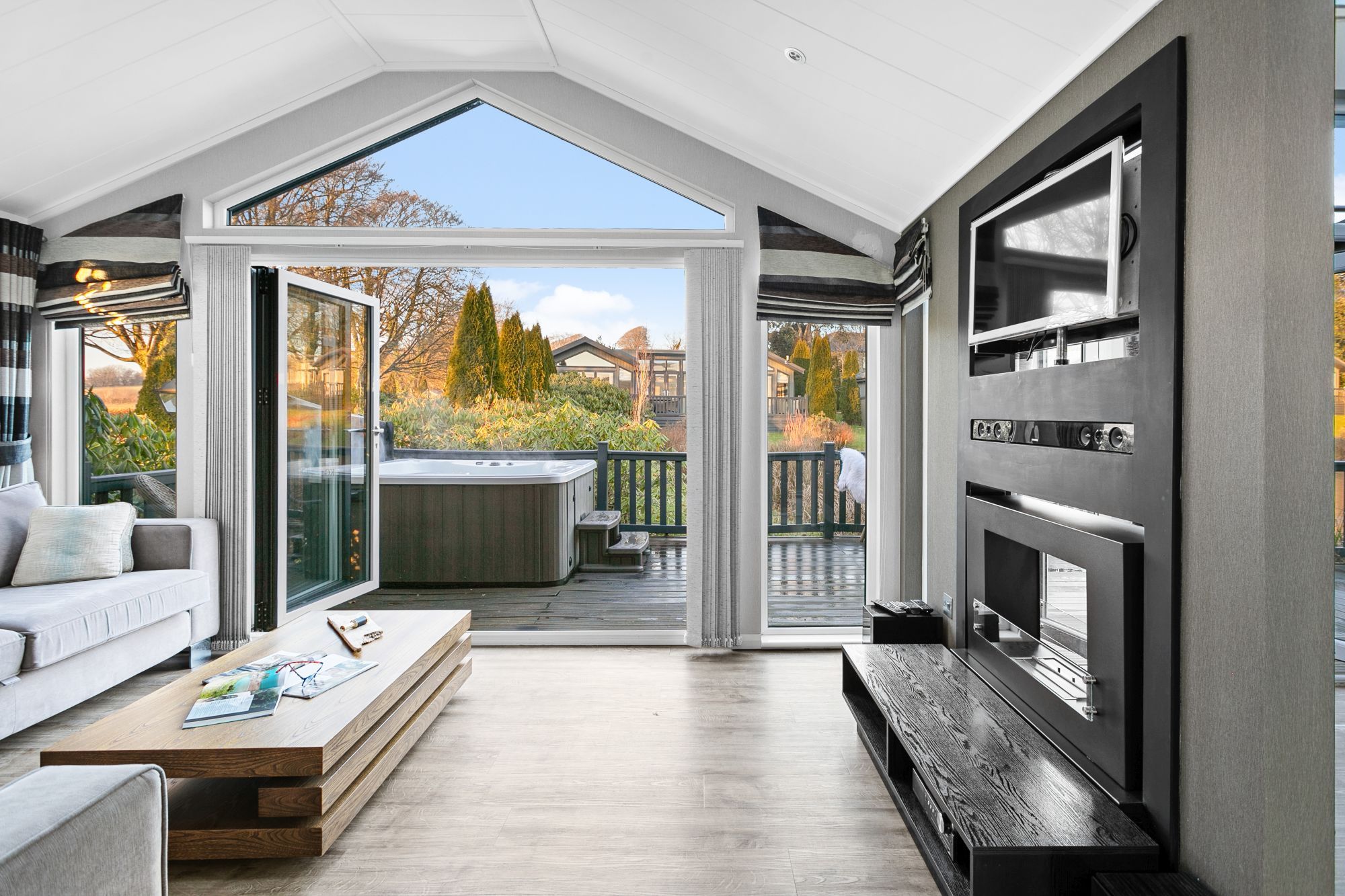 Churchill Lodge at Kentisbury Grange is a contemporary two-bedroom lodge in Devon's countryside.