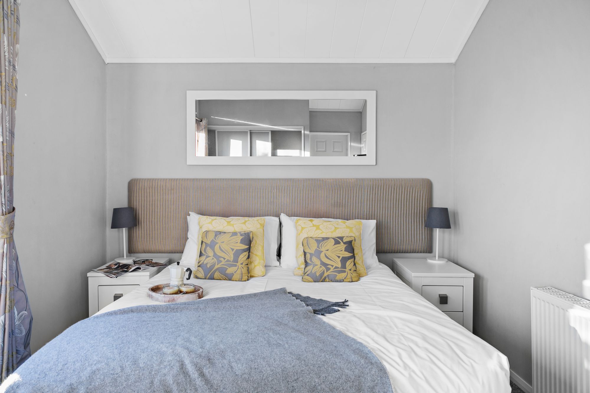 The master bedroom has a king-size bed with en-suite shower whilst the second bedroom offers twin beds (can be configured as double) with a freestanding bath and waterproof TV.