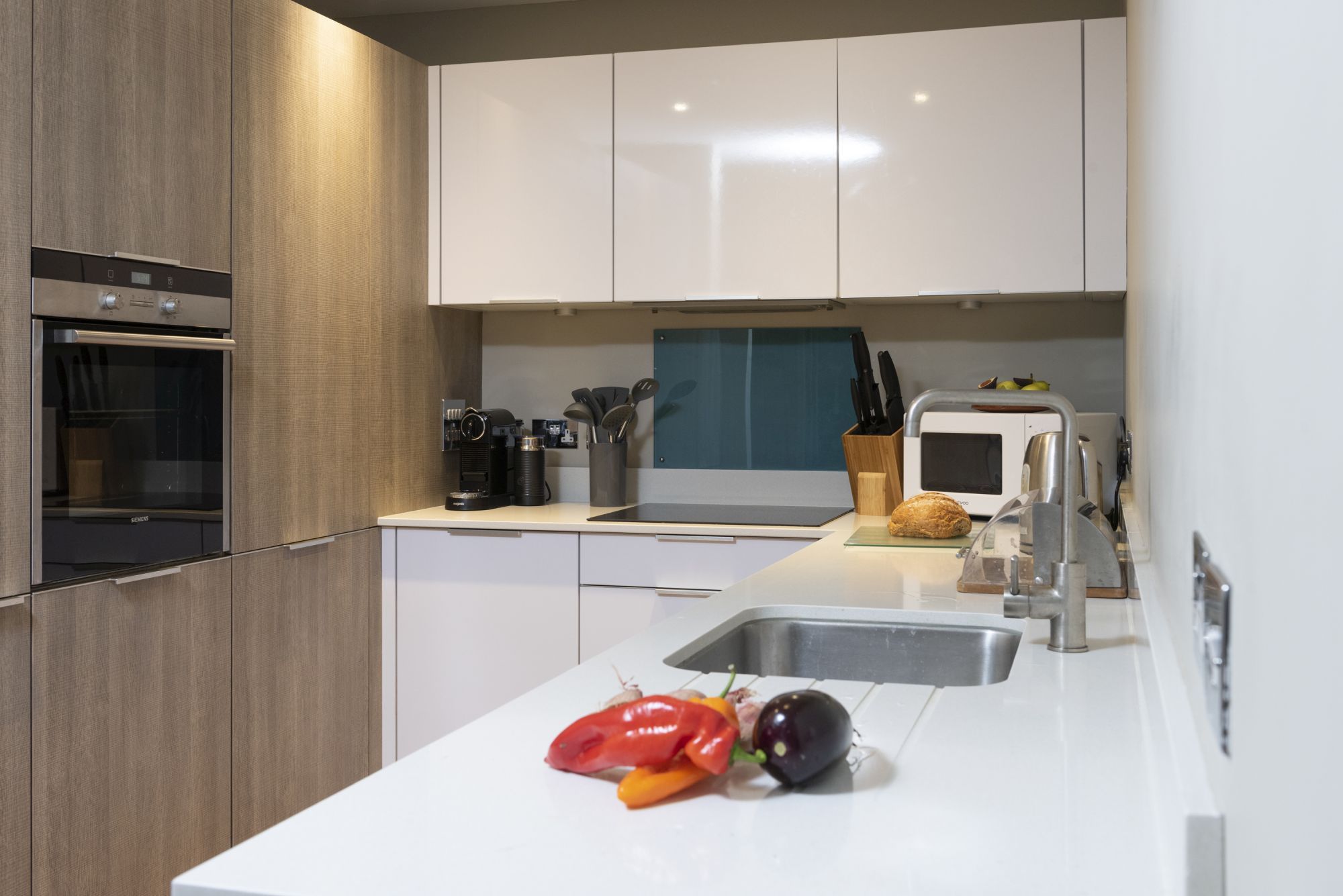 • Sleek modern kitchen with Sage coffee machine (Nespresso pods)
