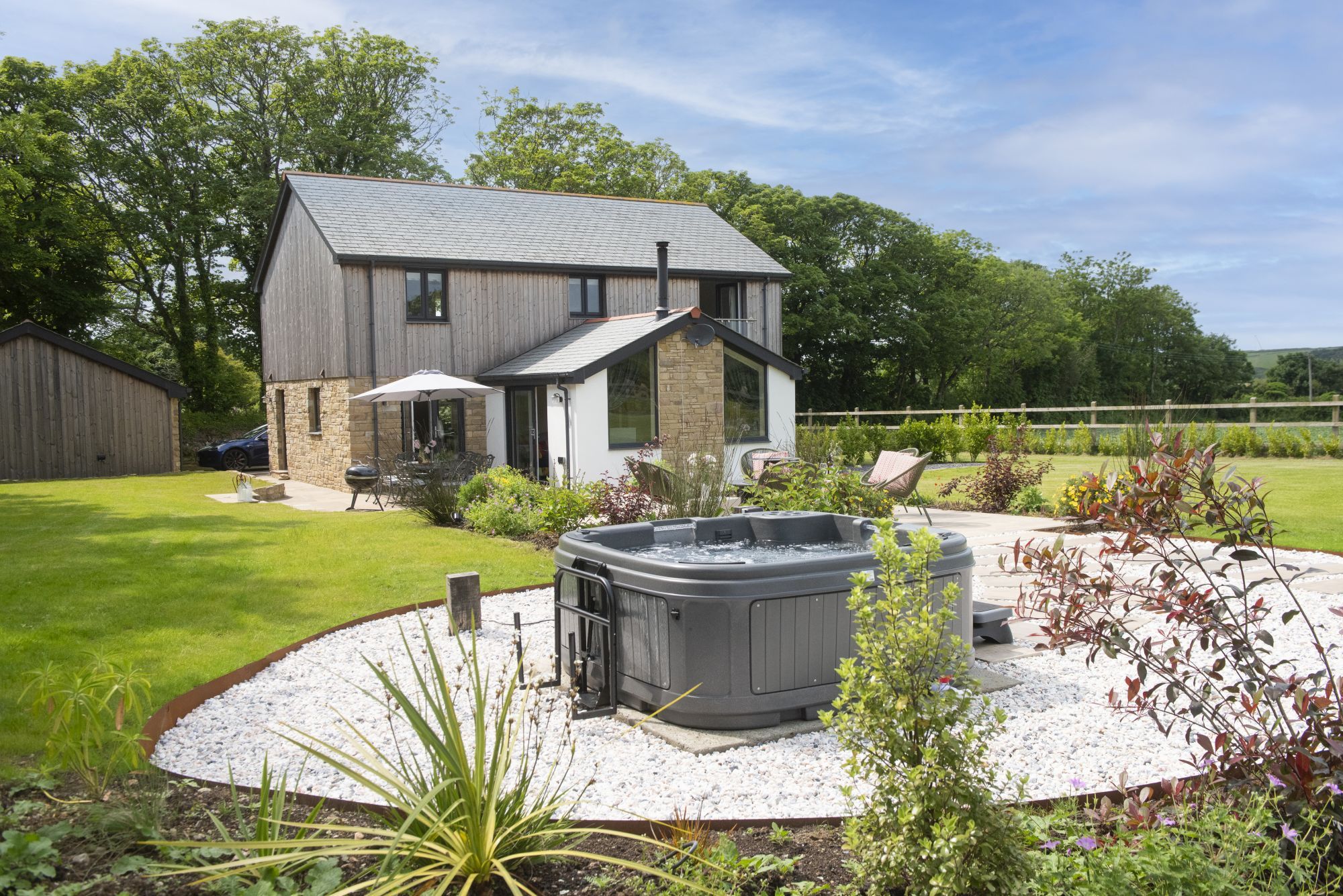 • Private hot tub in landscaped garden