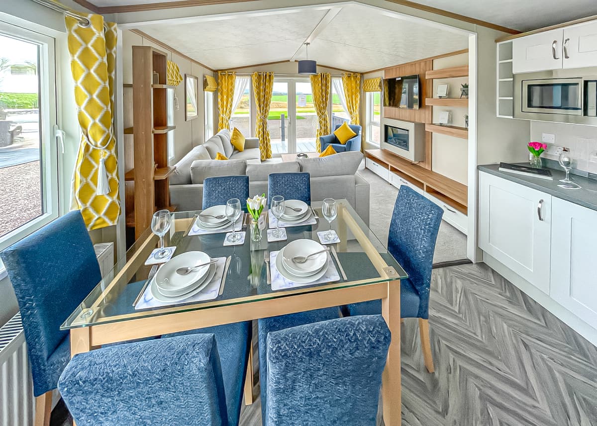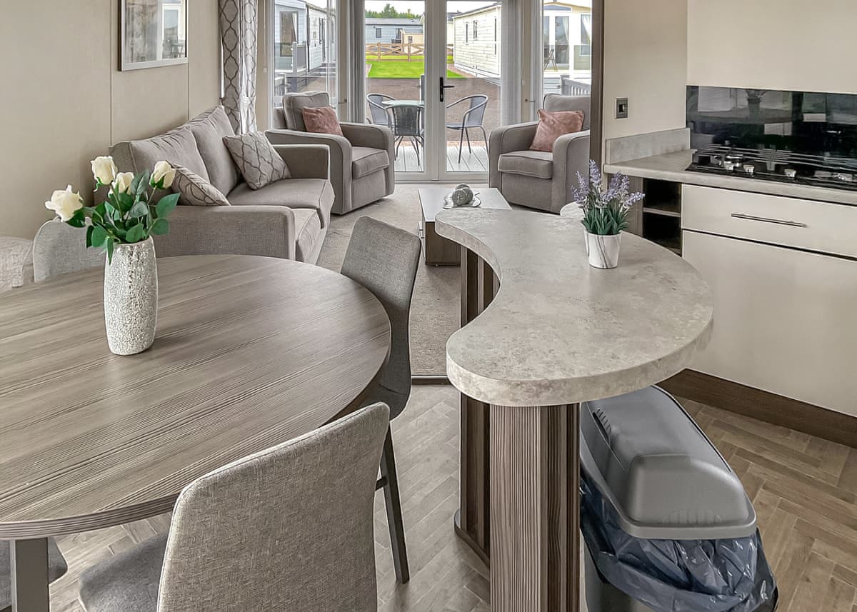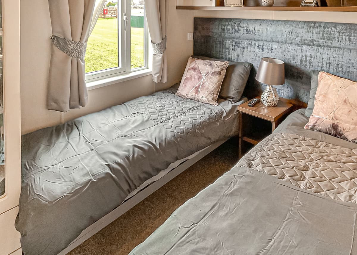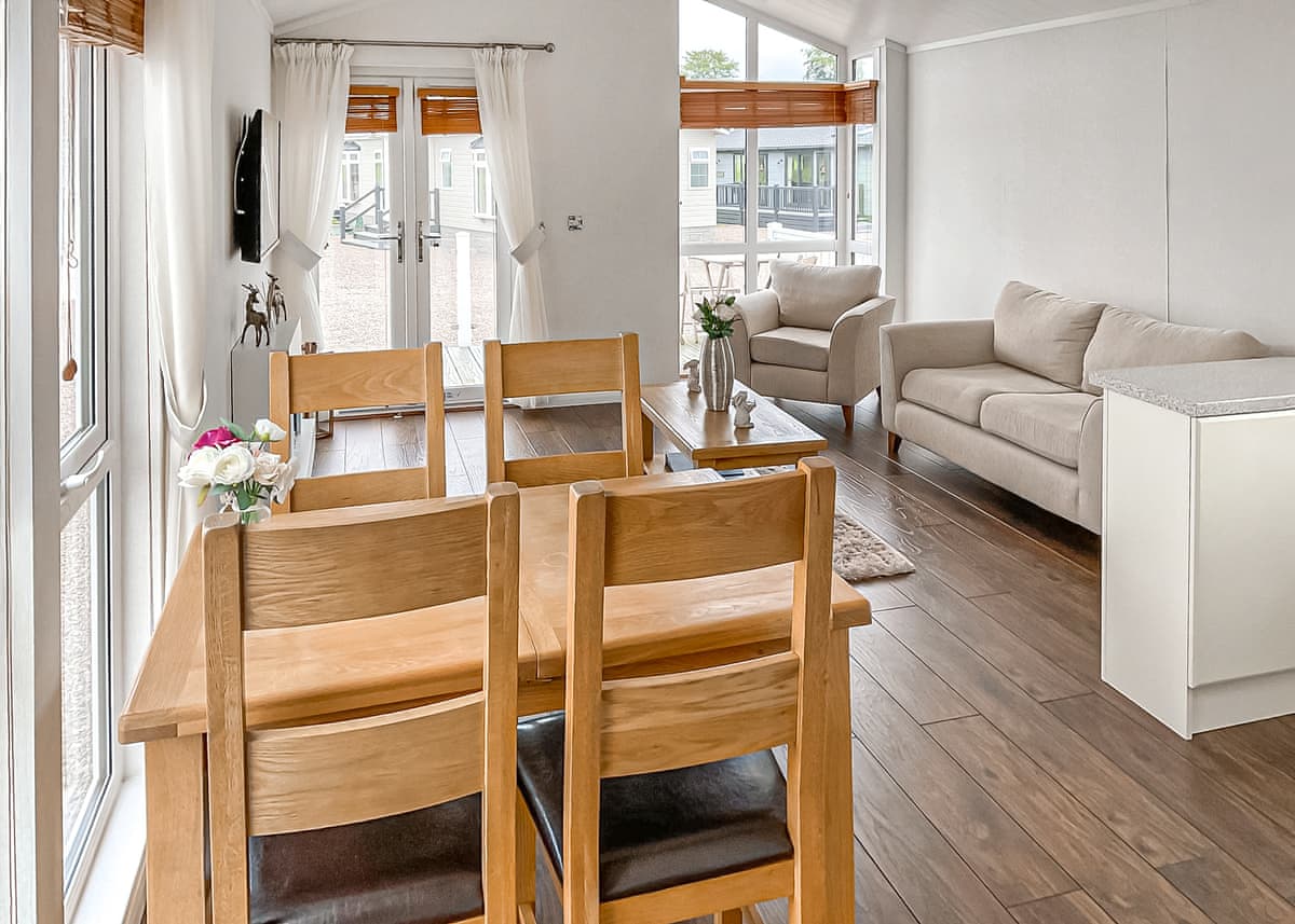 Dunnottar is a holiday home style accommodation, and the living area is framed by the glass patio doors to allow plenty of light in. The bedrooms, a double and a twin, are generously spacious, as is the bathroom. There are also lodges available which sleep six, many of which also have an outdoor hot tub. Huntly, Craigiever, Hatton, and Braemar were all new, and these comfortable and elegant holiday homes really provide a home-from-home feel.