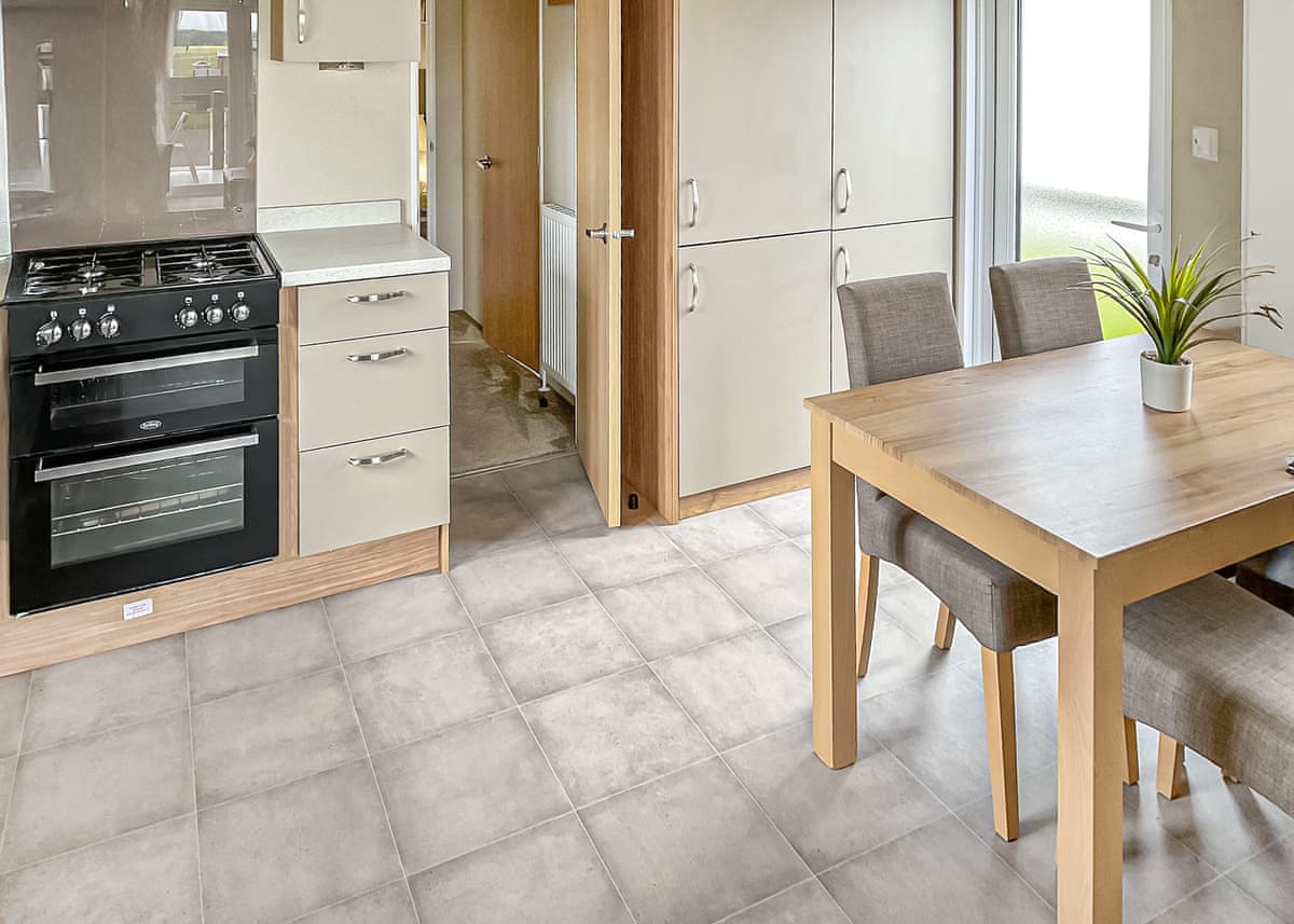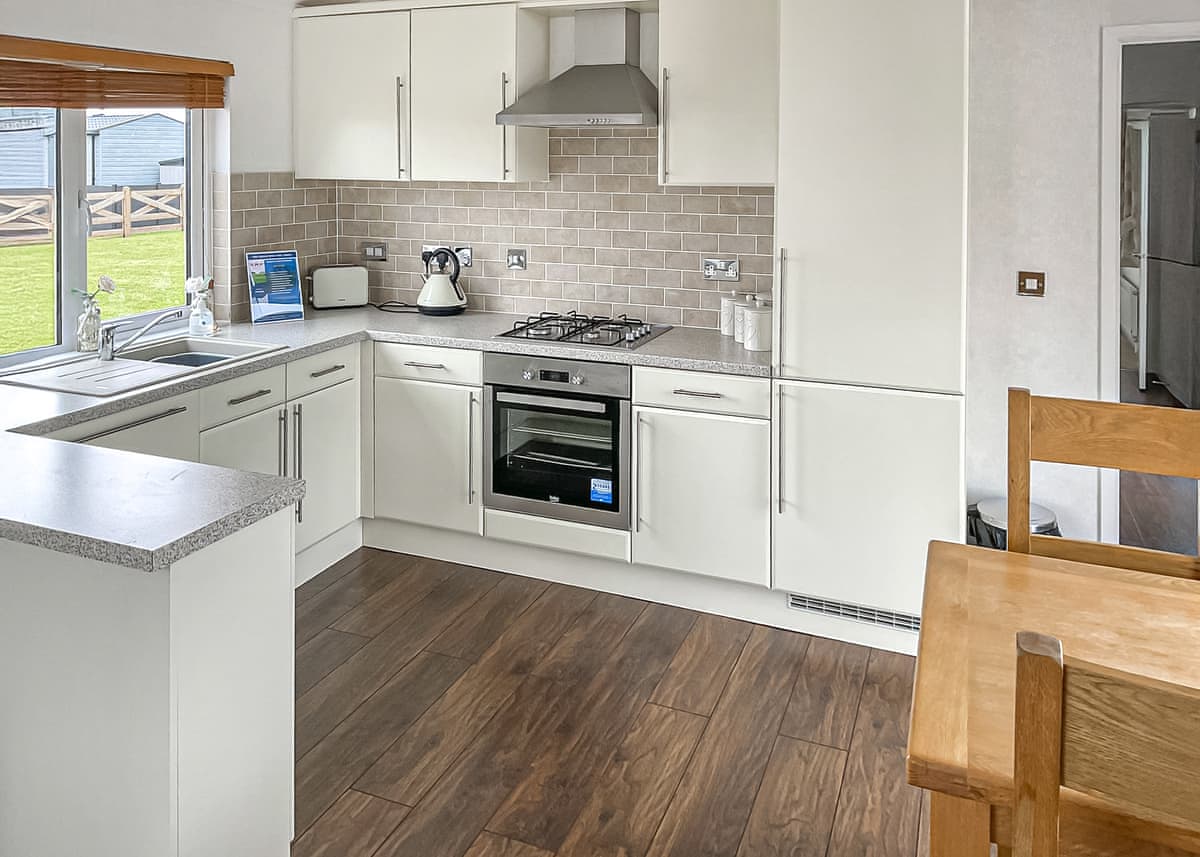 The furnishings are modern and stylish, yet comfortable. Each holiday home has a breath-taking view of the surrounding meadows, which is perfect to wake up to in the morning. Stuart is another six-person lodge, which has a cosy interior and rustic-feeling kitchen area. Relax in the outdoor hot tub in the evening after a day exploring the Scottish Highlands.
